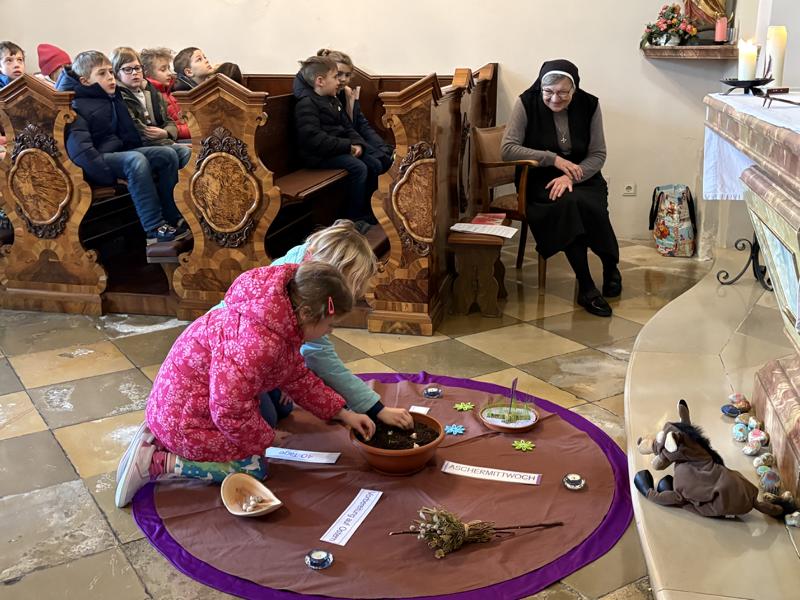 Bei unserer traditionellen Aschenkreuzfeier stimmten sich die Kinder auf Ostern ein.