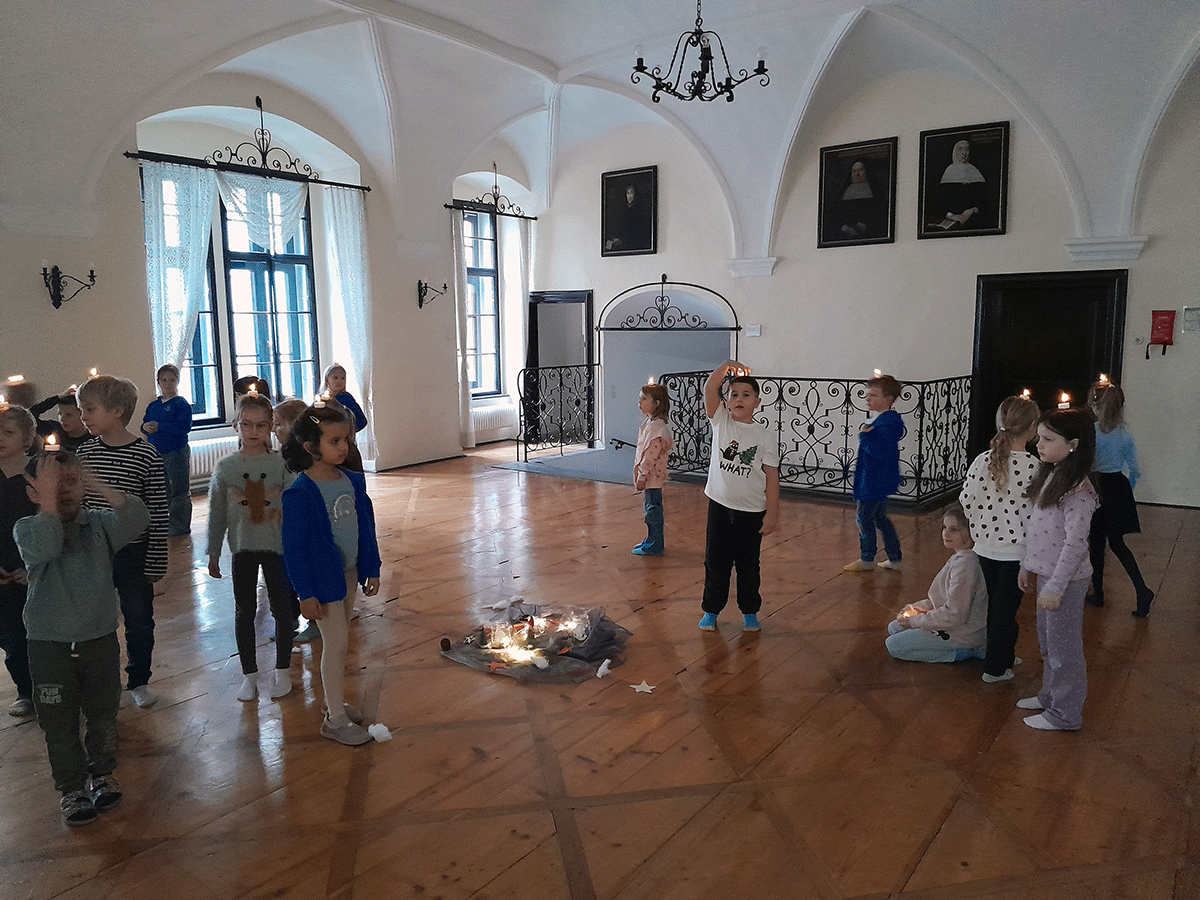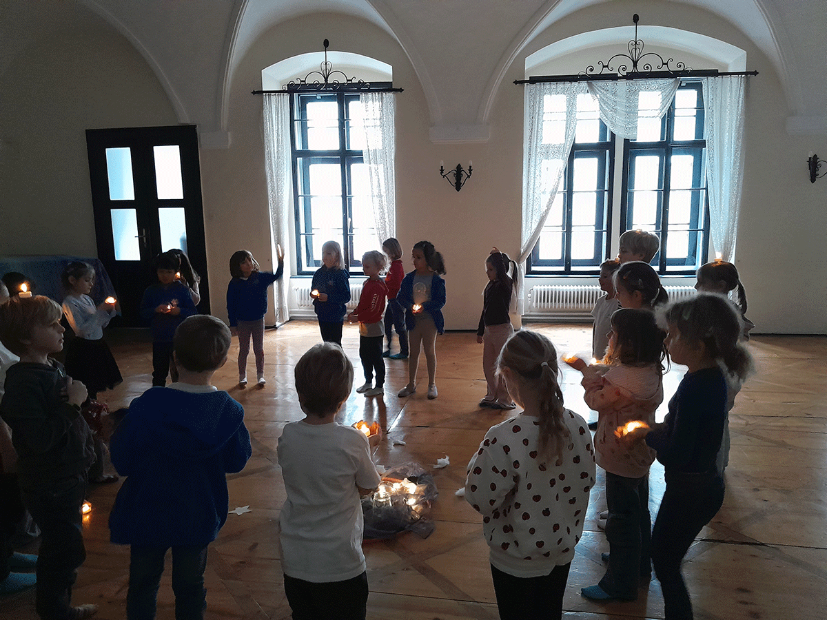 Mit einem Teelicht als Tanzpartner. bewegten sich die Kinder durch den Raum. Ruhige Momente wechselten sich mit akrobatischen Kunststücken ab. Und am Ende gab es dann noch eine gemeinsame Würsteljause.