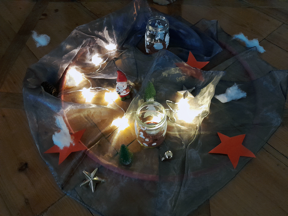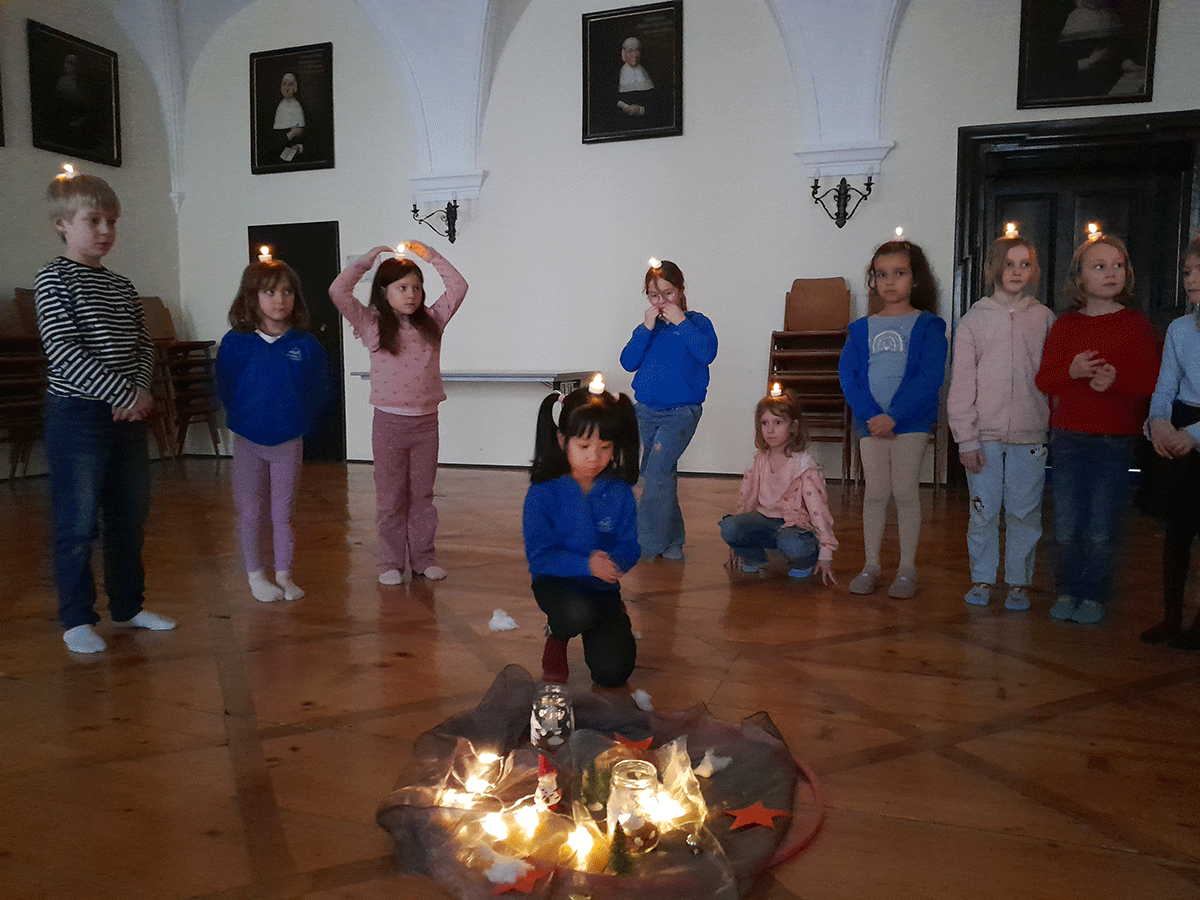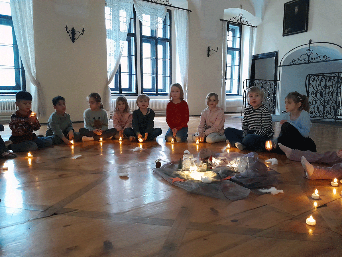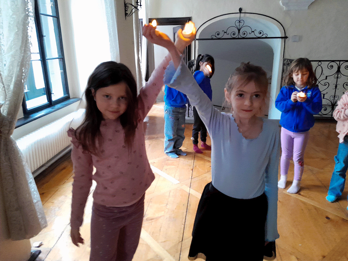 Mit einem Teelicht als Tanzpartner. bewegten sich die Kinder durch den Raum. Ruhige Momente wechselten sich mit akrobatischen Kunststücken ab. Und am Ende gab es dann noch eine gemeinsame Würsteljause.